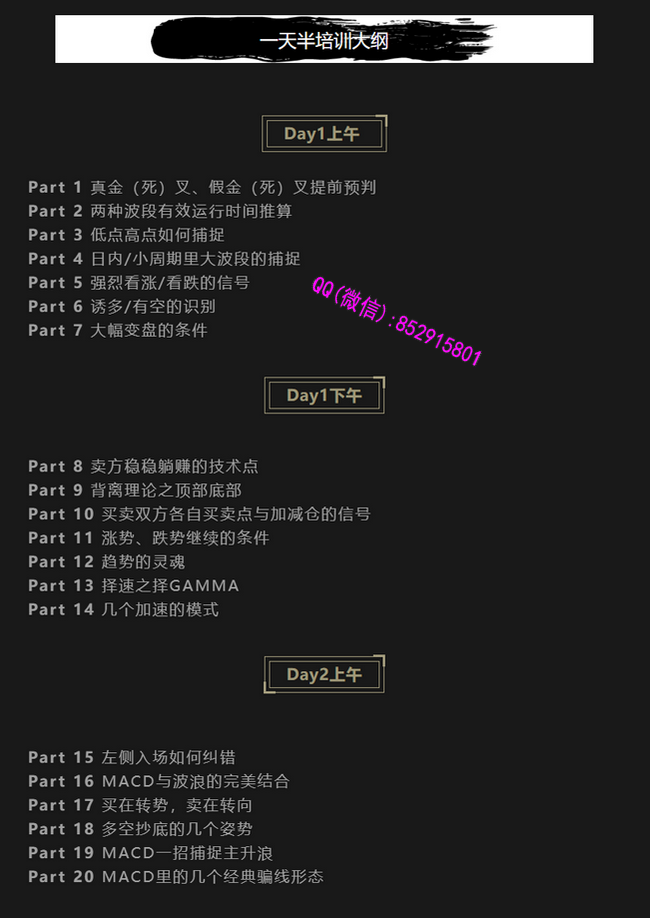 课程目录:01.深度了解MACD02.提前预判叉死叉03.两种波段有效运行时间推算04.高低点的捕捉05.日内小周期里大波段的捕捉06.强烈看涨看跌信号07.诱多诱空的识别08.大幅变盘的条件09.卖方稳稳躺赚的技术点10.背离理论之顶部底部11.买卖方开平含加仓信号12.涨势跌势延续的条件13.趋势的灵魂14.择速之择15.几个加速的模式16.左侧入场如何纠错17.MACD和波浪的完美结合18.买在转势卖在转向19.多空抄底的几个姿势20.MACD-招捕捉主升浪21.MACD里几个经典的骗线形态